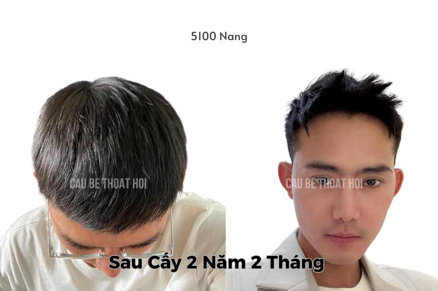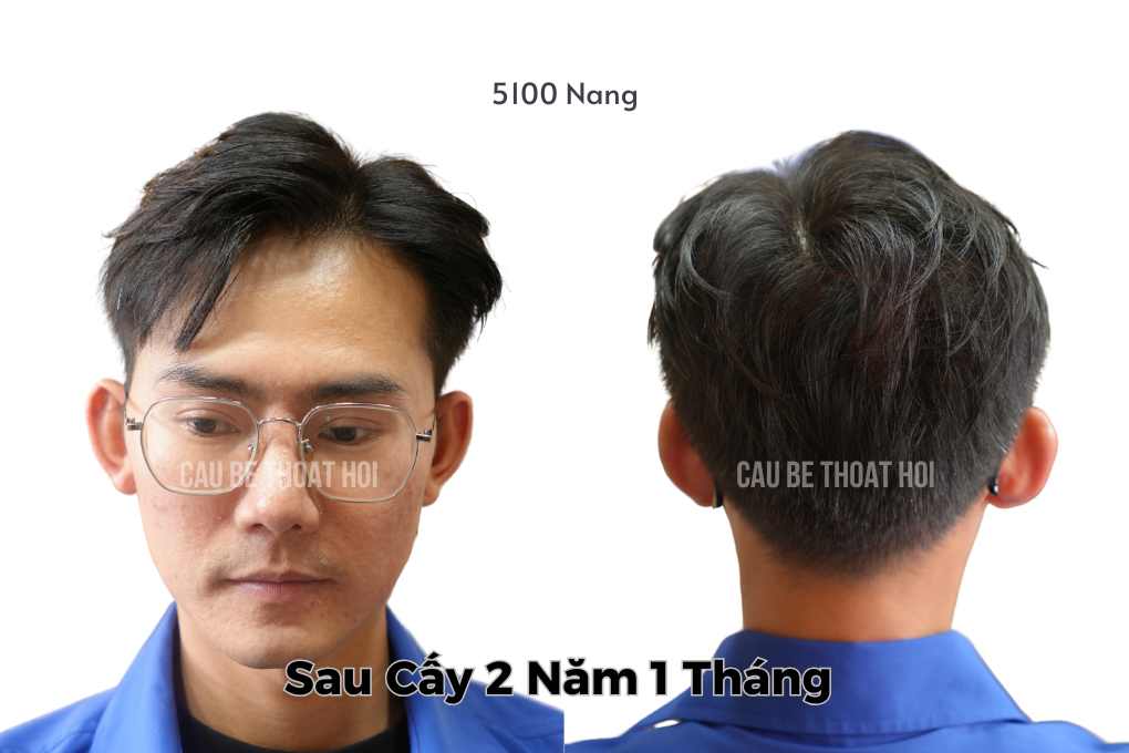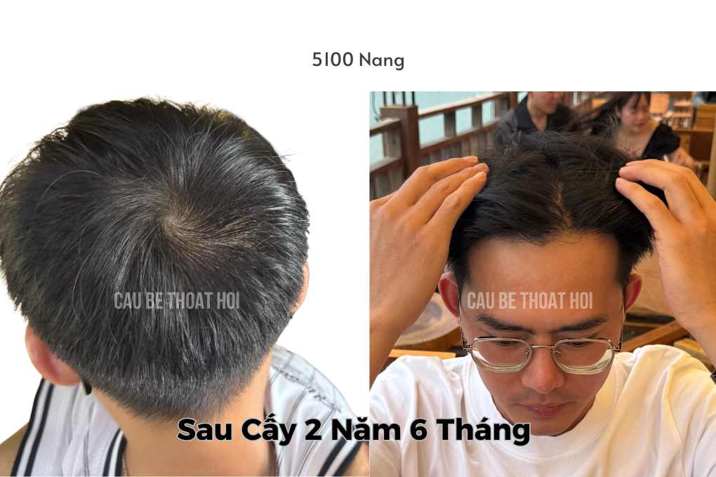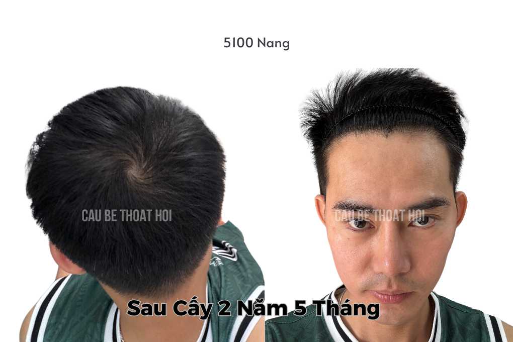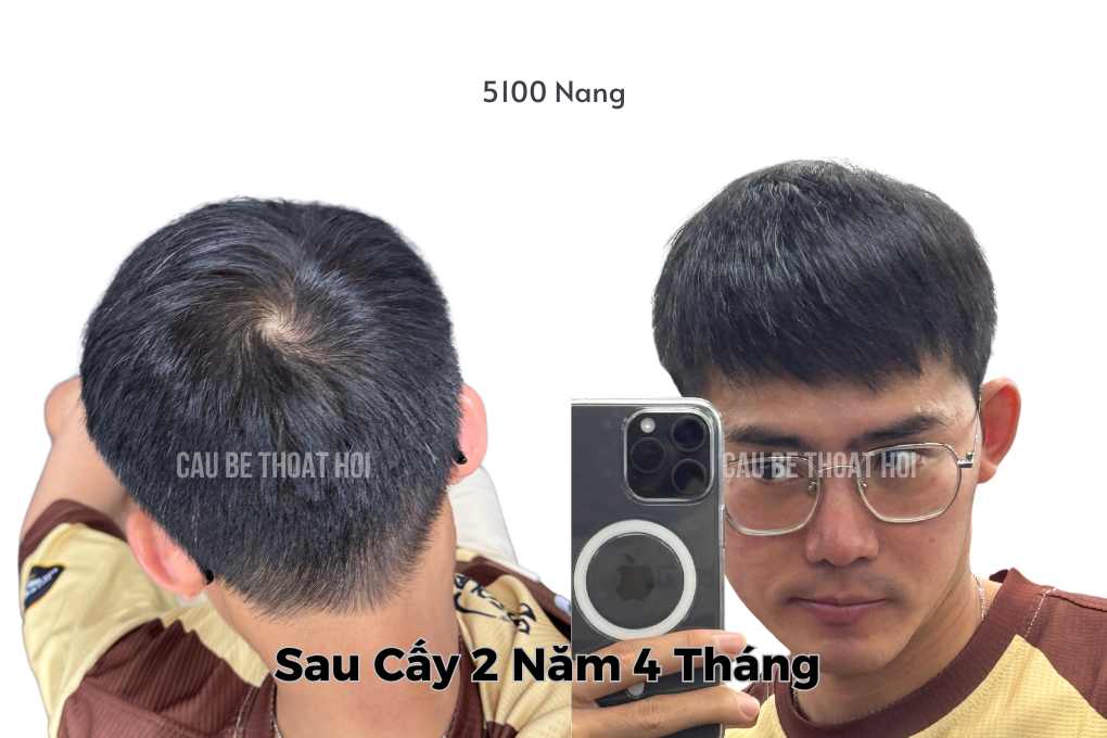 2 năm 4 tháng sau cấy tóc mình chỉ nói: Đẹp và Tự nhiên. Tóc mình để phủ cũng trông tự nhiên, mà tạo kiểu lên lại càng đẹp, chủ yếu nhờ vào 5100 nang này mà mình thay đổi tóc rất nhiều.