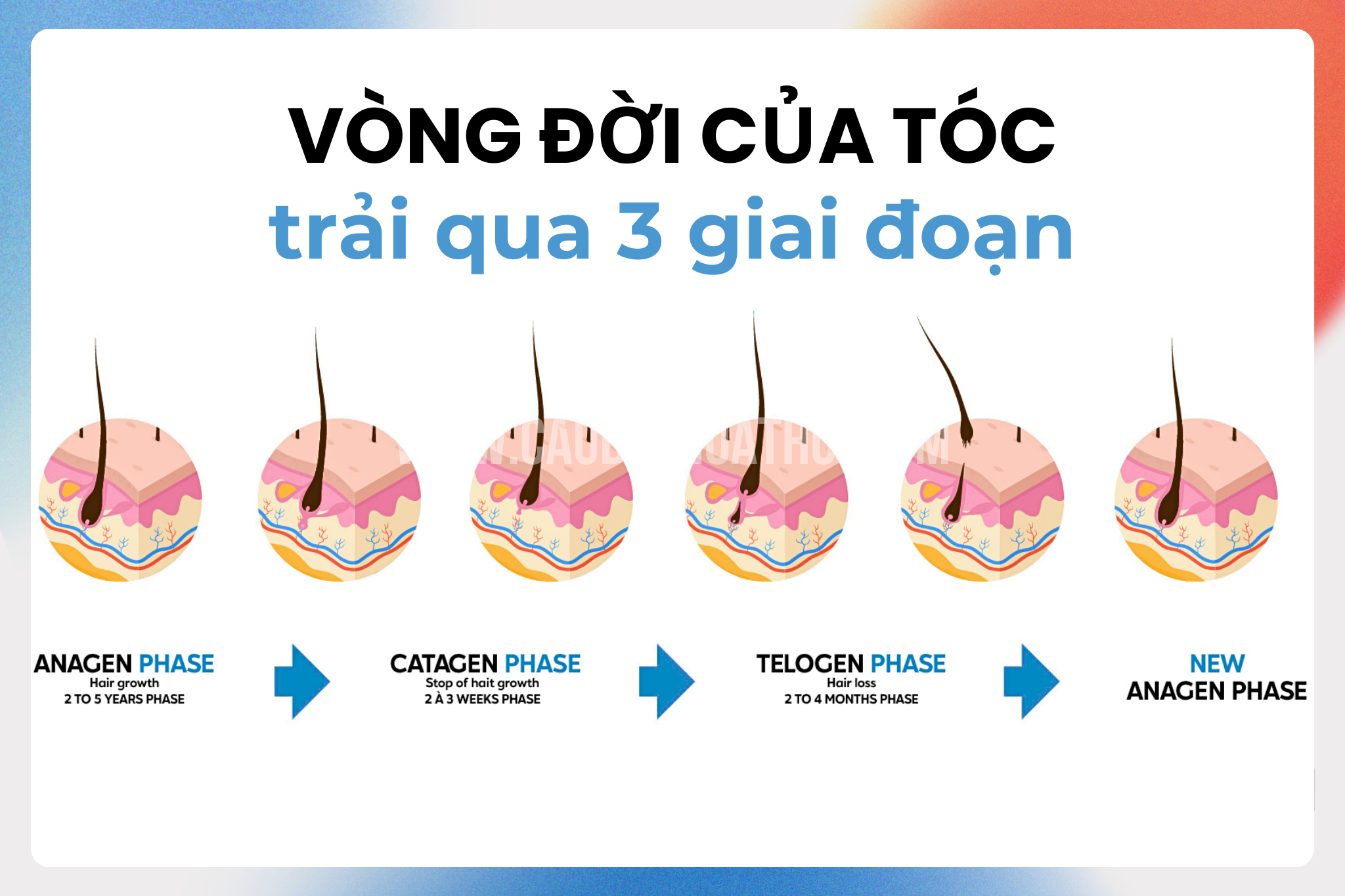 Vòng đời của tóc tuân theo 1 chu trình gồm 3 giai đoạn chính (giai đoạn 4 ít được nhắc tới). Trung bình một đời người mỗi nang tóc trải qua khoảng 25 chu trình.
