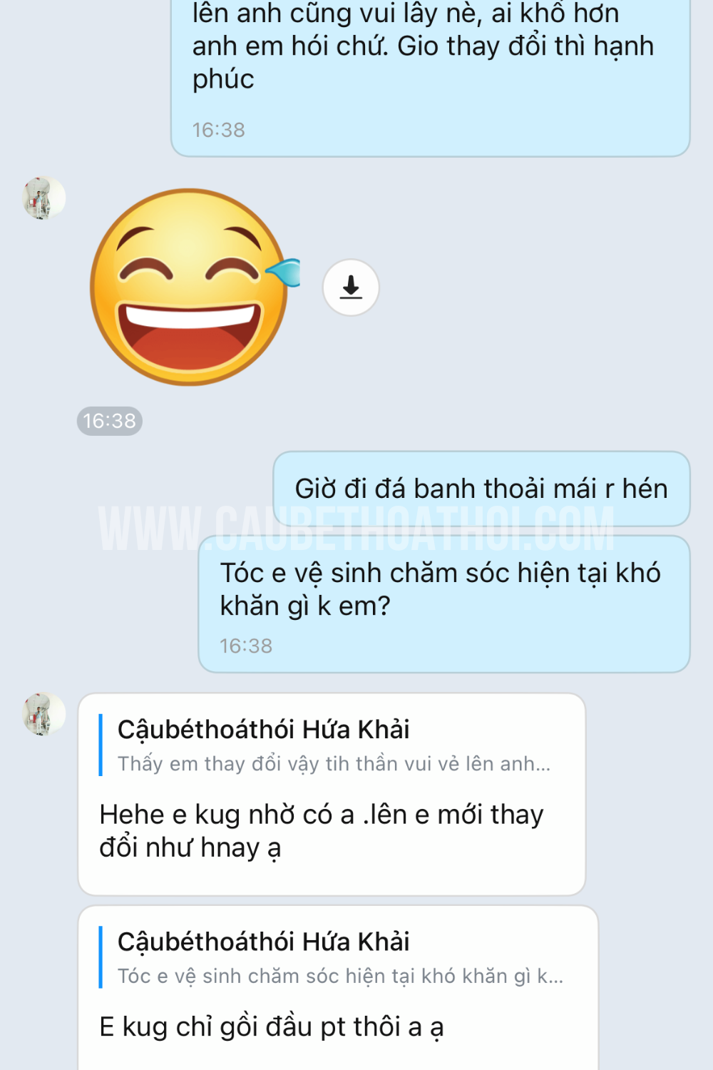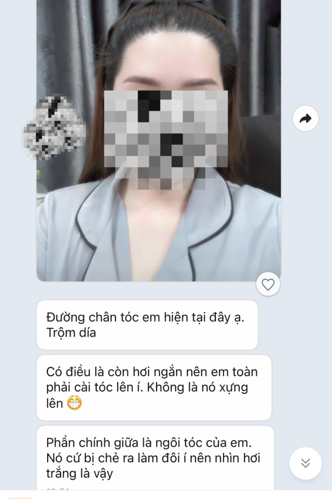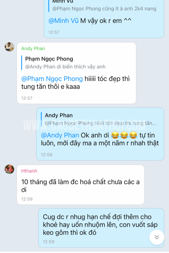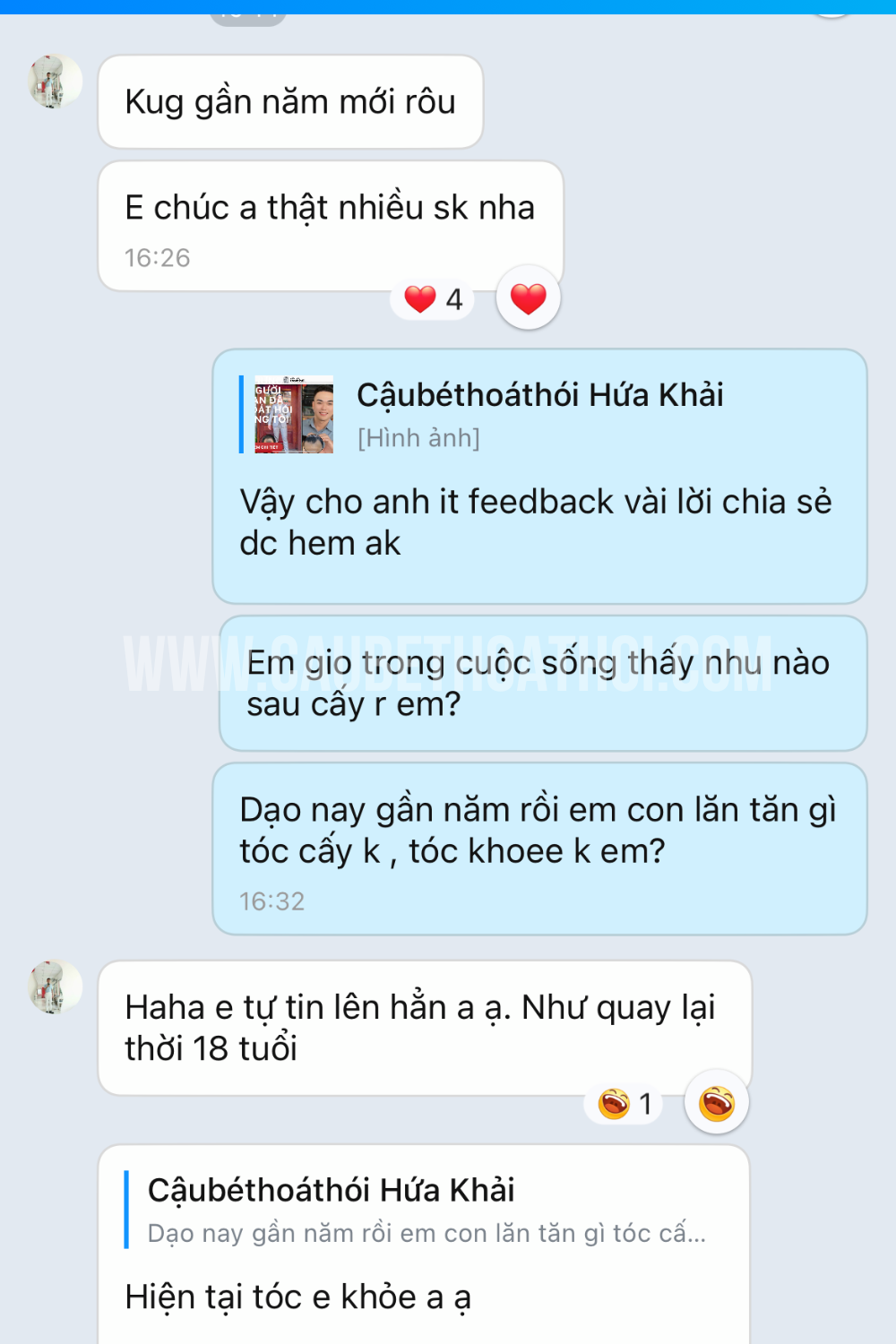 N.H.T ở Hà Nội chia sẻ: “May ngày đó biết anh rồi nhắn tin hỏi và được anh chia sẻ tất cả nên đi làm chỗ uy tín, giờ tóc 1 năm hơn đẹp rồi anh ơi..”