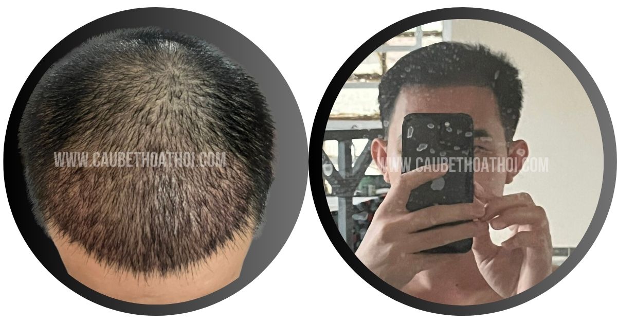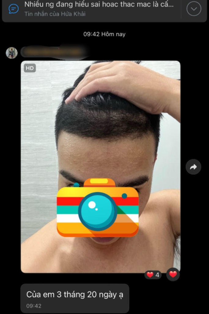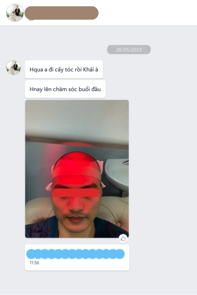 Q. A tâm sự: “Hói rụng hết nên nhiều khi rất là ngại…mình ngại nhất là khi đi cắt tóc phải bỏ mũ ra để.. Search từ khoá cấy tóc tự thân, rất là may mắn gặp bạn Khải ở đây. Từ lúc nói chuyện với bạn Khải chắc khoảng 2 tuần sau là mình đi cấy…”