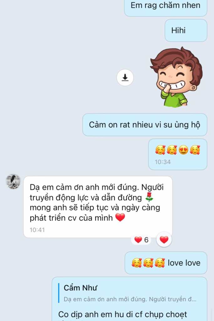 Đ.M quê ở Thanh Hoá đang làm việc tại Long An chia sẻ: “…may mắn là có bác dẫn đường..nhờ gặp được bác trên tiktok,… Mới ngày nào còn đi hỏi từ dầu gội cho tới thuốc thang kiêng khem, giờ thoải mái tung tăng ngoài đường nắng gió…”
