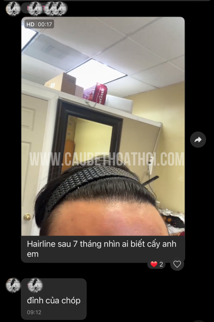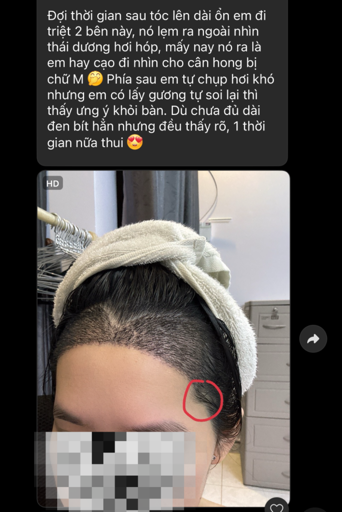 H.K sống ở Hà Nội vui mừng báo tin: ” …line tóc cấy chữ V giống cậu nè. Nhờ tìm hiểu kỹ mà mình chọn chỗ cấy uy tín, kết quả là tóc thành công sau mấy tháng rồi cậu ơi..”