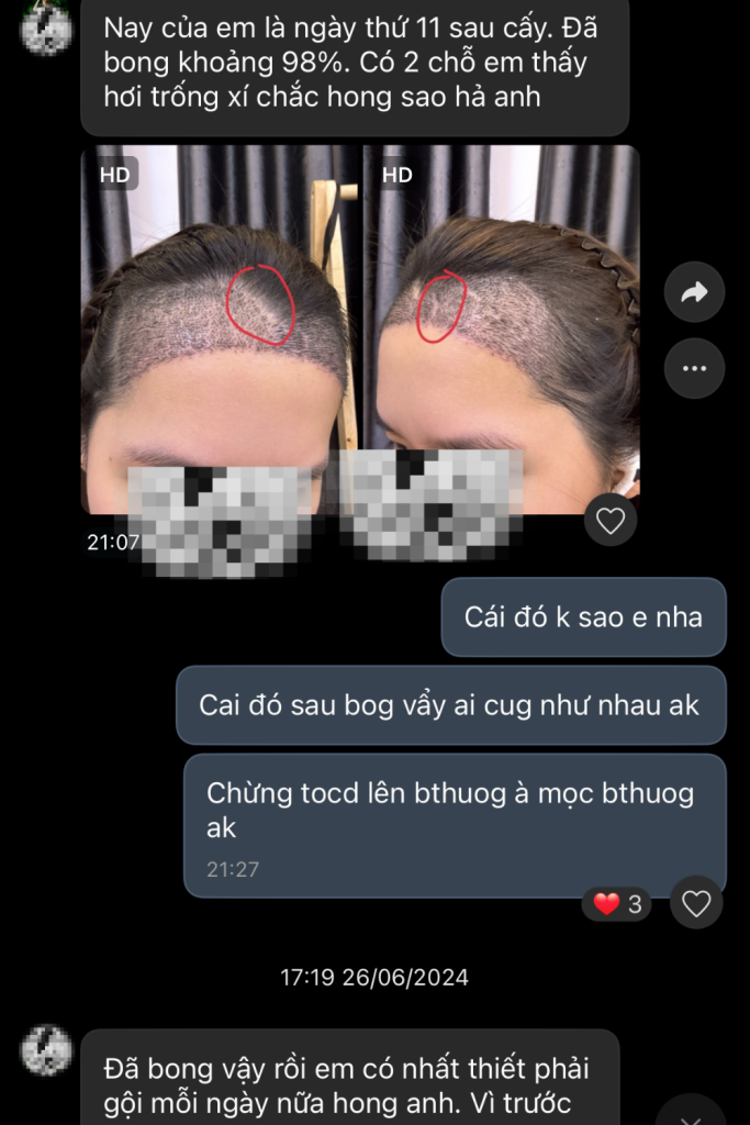 EM BỊ BÒ LIẾM VÀ ĐÃ CẤY TÓC DHI 1125 NANG TÓC THÀNH CÔNG