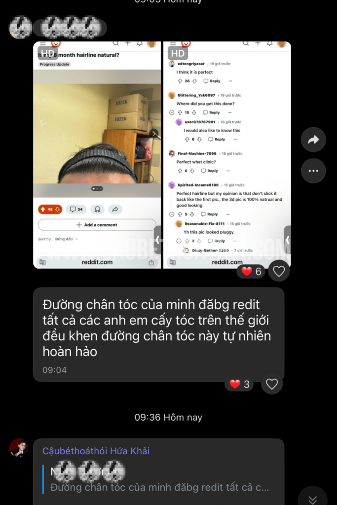 N.T định cư tại Mỹ chia sẻ:”Sau 7 tháng đường chân tóc mình đăng lên Reddit tất cả các anh em cấy tóc trên thế giới đều khen đường chân tóc này tự nhiên hoàn hảo..”