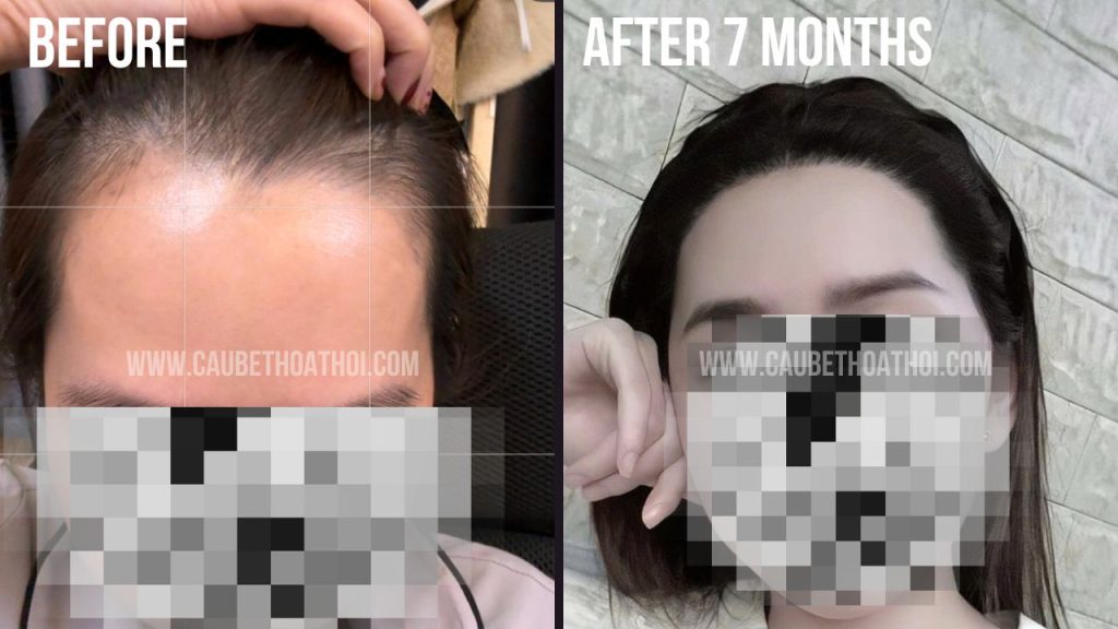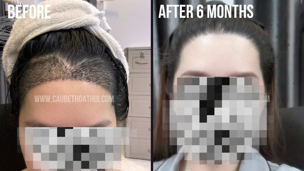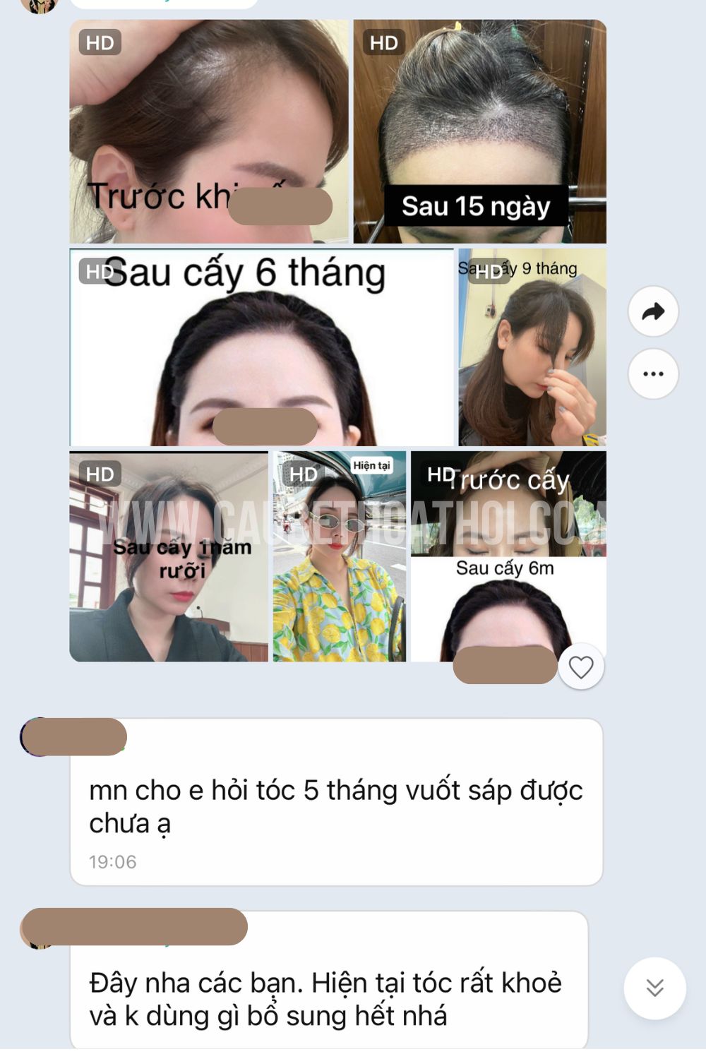 M.T ở Huế tâm sự: “… trán em cao muốn hạ trán cho chuẩn hơn… sau gần 2 năm cấy bây giờ tóc tự nhiên rồi ạ. Tóc cấy em giờ bình thường rồi…”