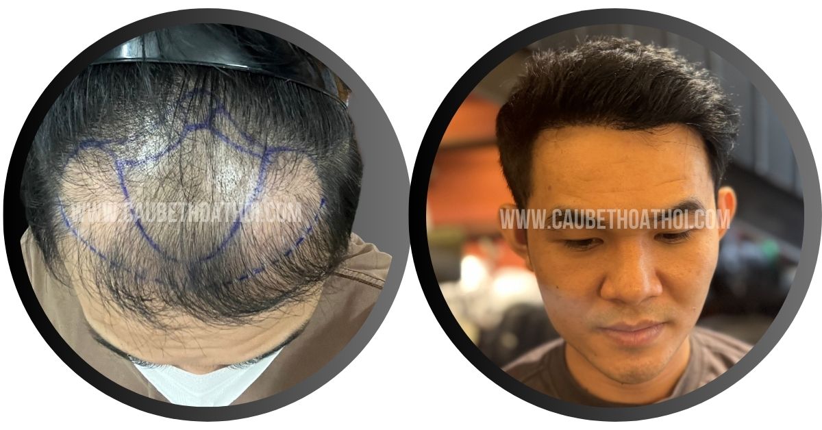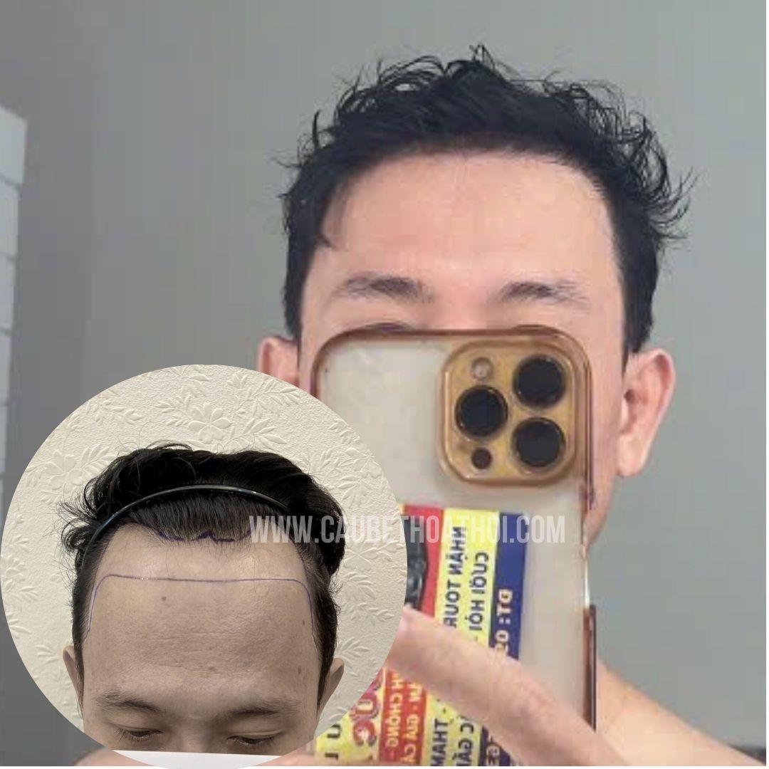 Đ.T quê ở Huế đang sinh sống tại Sài Gòn chia sẻ “…nhờ anh chỉ chỗ mà em đã tìm hiểu kỹ hơn và thay đổi sau cấy tóc sửa lại lần 2 với 2100 nang, em thấy tiếc chỉ hói chữ M nhưng đã tốn tổng cộng 4800 nang tóc…”