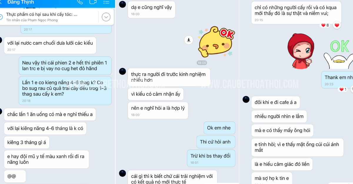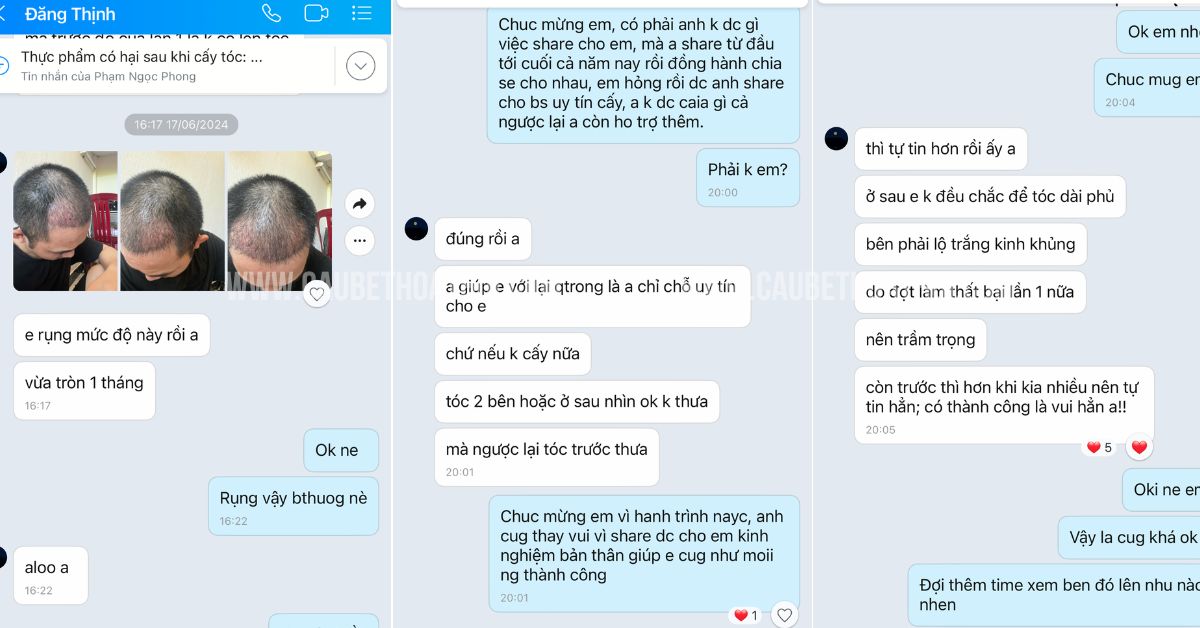 A.P chuyên gia make up nhà tại Sài Gòn chia sẻ: “..có bên trung tâm cấy nổi tiếng SG tài trợ anh làm, nhưng mà anh không tin,.. anh thấy em người thật và làm thành công nên anh đi cấy giờ đúng là cấy đúng bác sĩ tóc đẹp tự tin…”