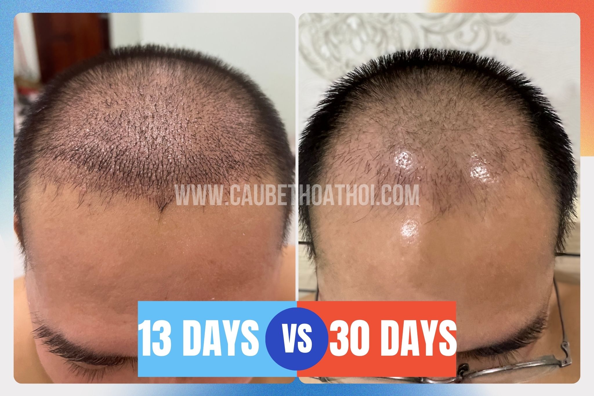 Các mảnh ghép tóc có xu hướng rụng trong khoảng 2-12 tuần sau phẫu thuật. Sau khi rụng, tóc sẽ bắt đầu mọc lại trong vòng 3-12 tháng tiếp theo. Từ 12-18 tháng sau phẫu thuật, tóc sẽ bắt đầu dày lên, khiến kết quả cuối cùng thậm chí còn tốt hơn.